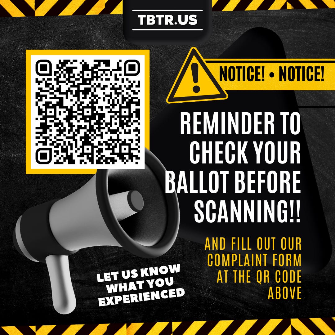 Share out this graphic with the QR code linked to our Voter Complaint Form. Have all voters, watchers, and workers who experienced voting issues fill out the complaint form by simply showing them the QR code to scan with their phone. Link to the form is in the description, along with all above citation.